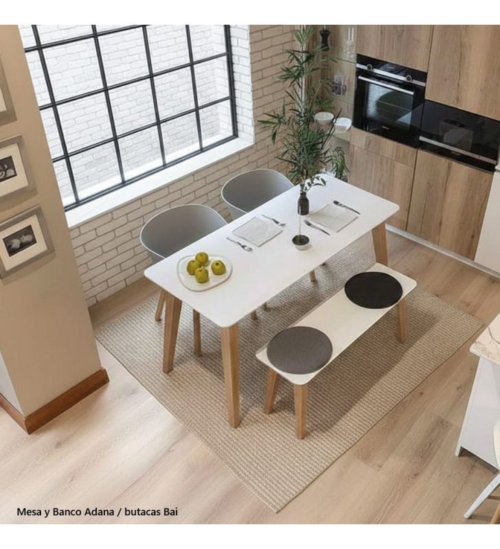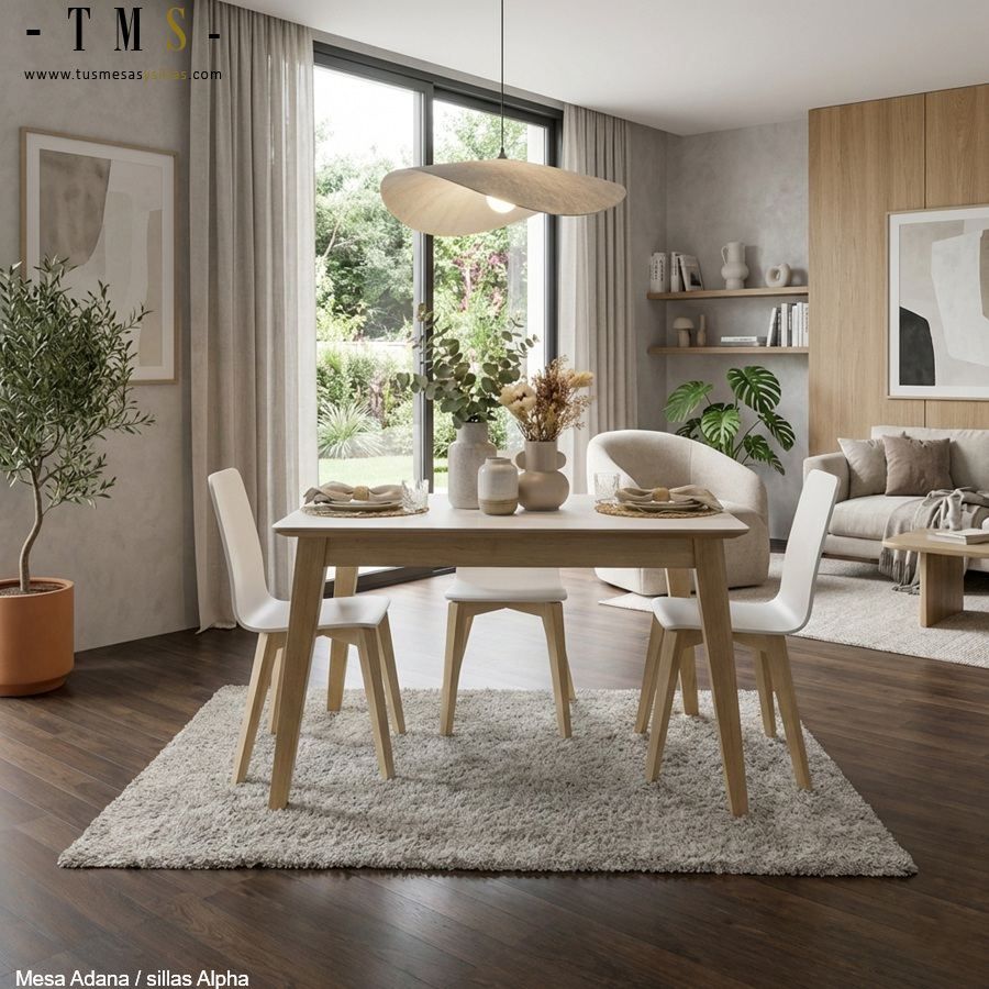 Con una estética moderna y armónica, la mesa Adana se adapta a cualquier espacio, aportando calidez y elegancia tanto en cocina como en comedor.
