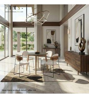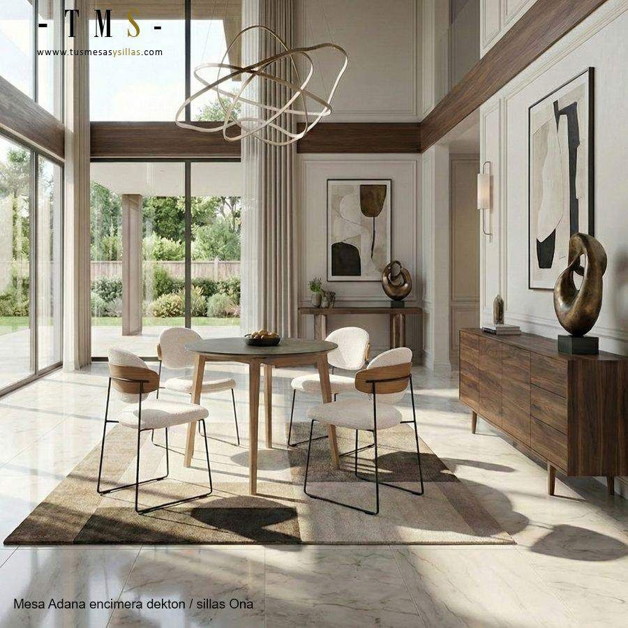 El contraste entre el roble y el tapizado suave hace que Ona combine a la perfección con mesas de madera clara, ambientes de inspiración nórdica y salones luminosos.
