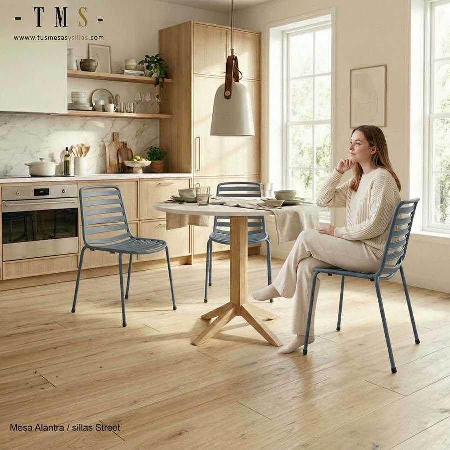 Es una silla pensada para que combine con una decoración moderna y actual, con una estética ligera y minimalista es el complemento perfecto para una mesa de cocina, mesa de exterior o un espacio abierto.