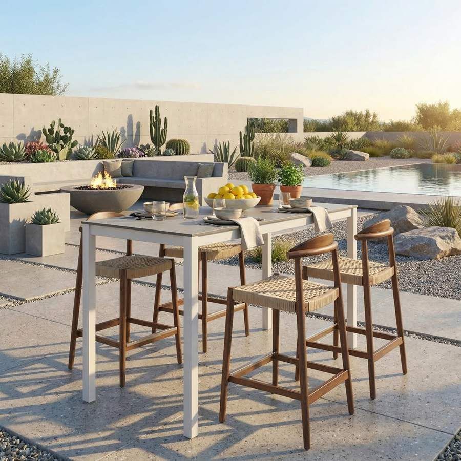 ¿Qué taburetes eligo para esta mesa de exterior?