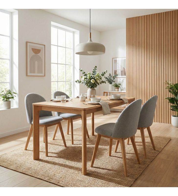 Ventaja práctica: la mesa se adapta a cada momento: compacta para el día a día, grande cuando toca reunir.
