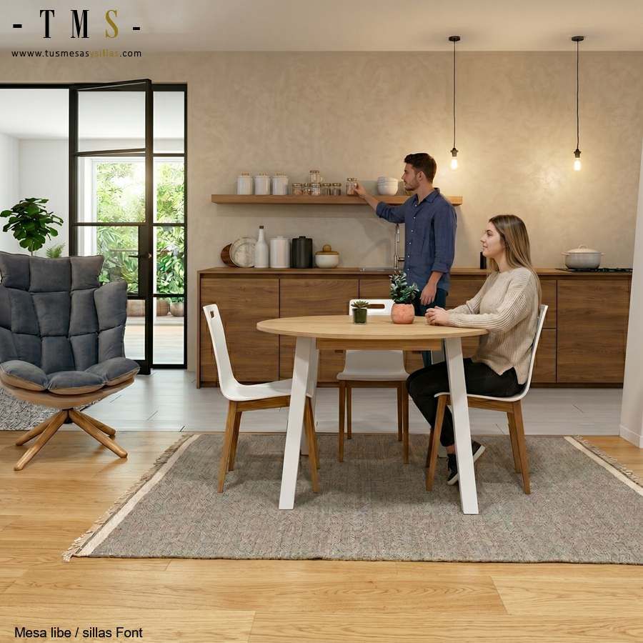 Si buscas una mesa redonda moderna para 2, 4 o 6 personas a diario, con posibilidad de ampliarla cuando vienen invitados, la Libe resuelve muy bien ambas necesidades sin recargar el espacio.