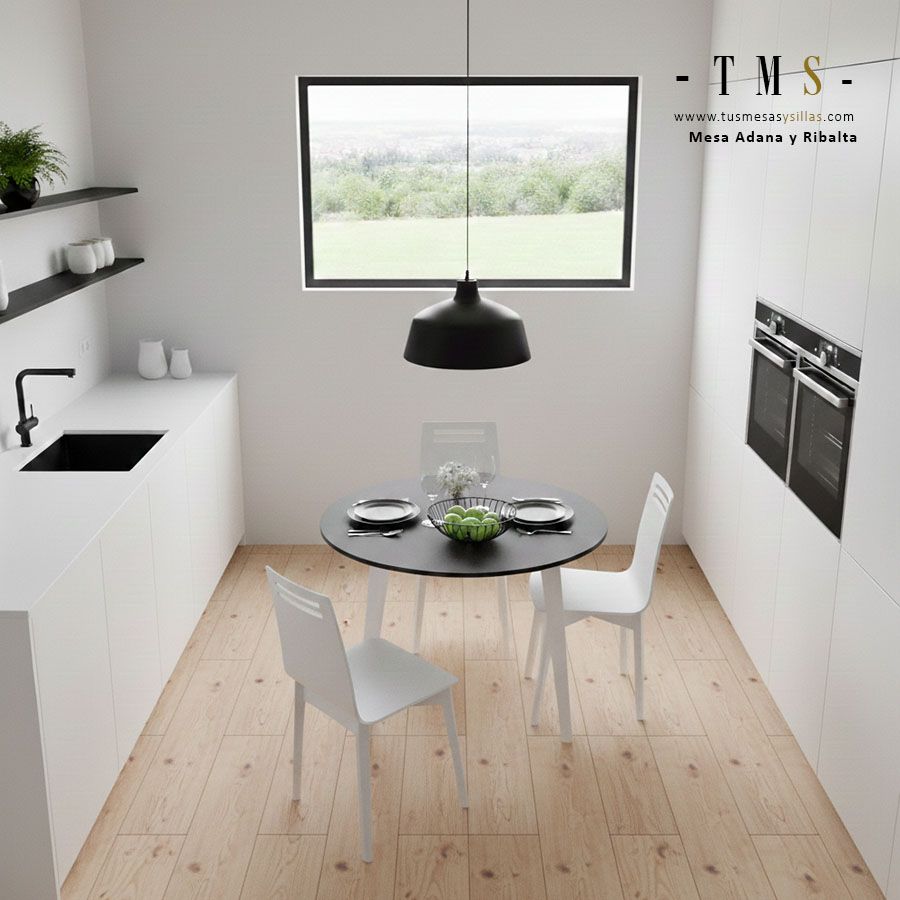 Ideal como mesa redonda para cocina o espacio único de cocina abierta al salón, favorece la conversación y optimiza el espacio en planta.