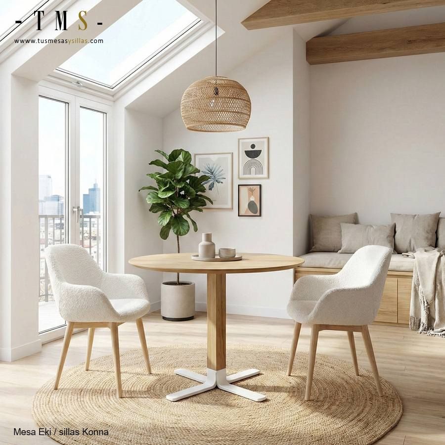 Mesa redonda pequeña salon, modelo Eki con encimera madera maciza