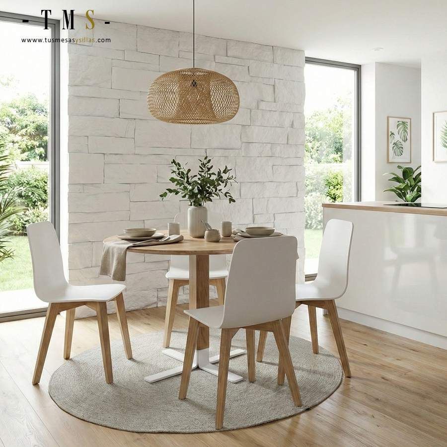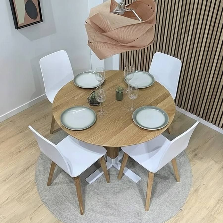 ¿ Quieres una mesa redonda que sea práctica, con un diseño moderno y una encimera de madera maciza ?