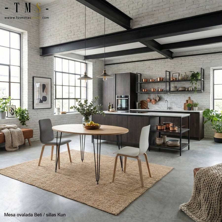 Precios y medias de mesas ovaladas o elípticas de estilo industrial para cocina o comedor