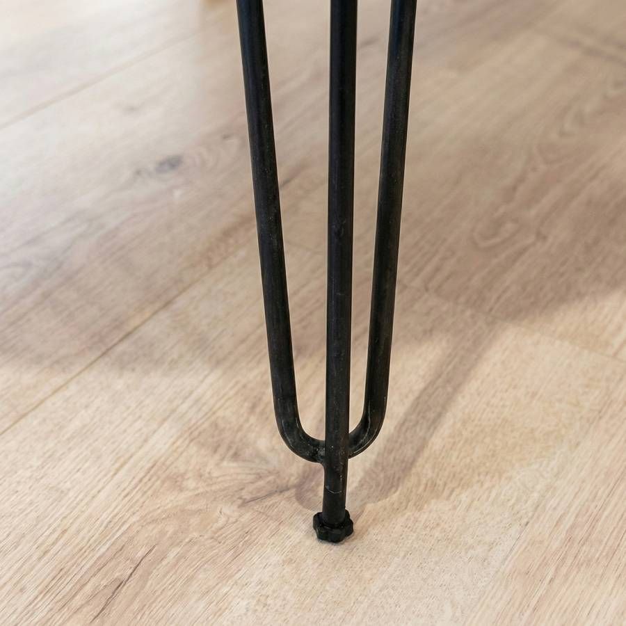 Las patas son de tubo de hierro macizo, redondo, con una cuidada inclinación y con 3 varillas para que sean sólidas y robustas. Cuenta con niveladores integrados para poder desplazar la mesa y no rallar el suelo. Acabadas en color blanco, negro, dorado y envejecido para que puedas combinarlas con la encimera a tu gusto.