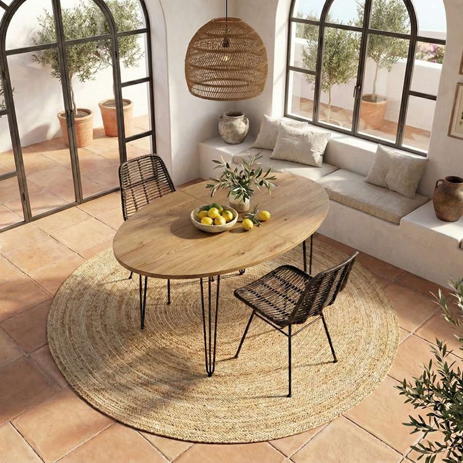 Tip decoradora: si quieres un comedor equilibrado, una ovalada grande se ve más “amable” que una rectangular del mismo largo. Y además, mejora el flujo en zonas de paso.