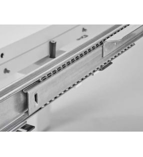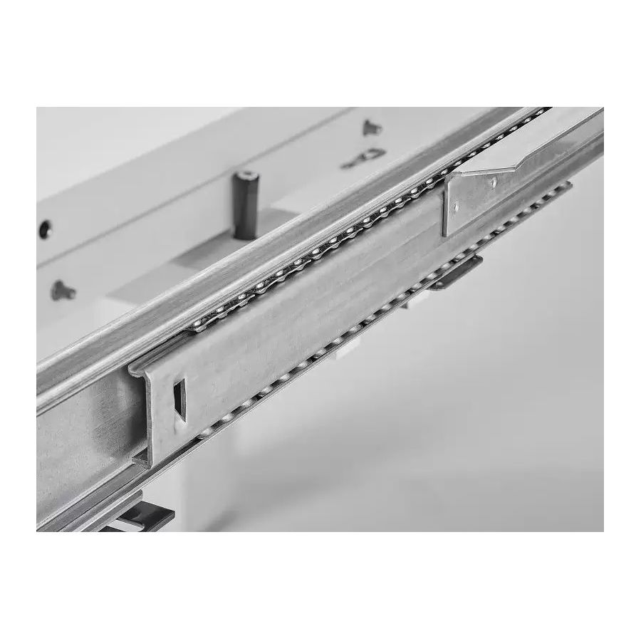 En una mesa extensible grande, la guía lo es todo. Beti incorpora una guía de acero de alta resistencia, pensada para un uso real y sin mantenimiento.
