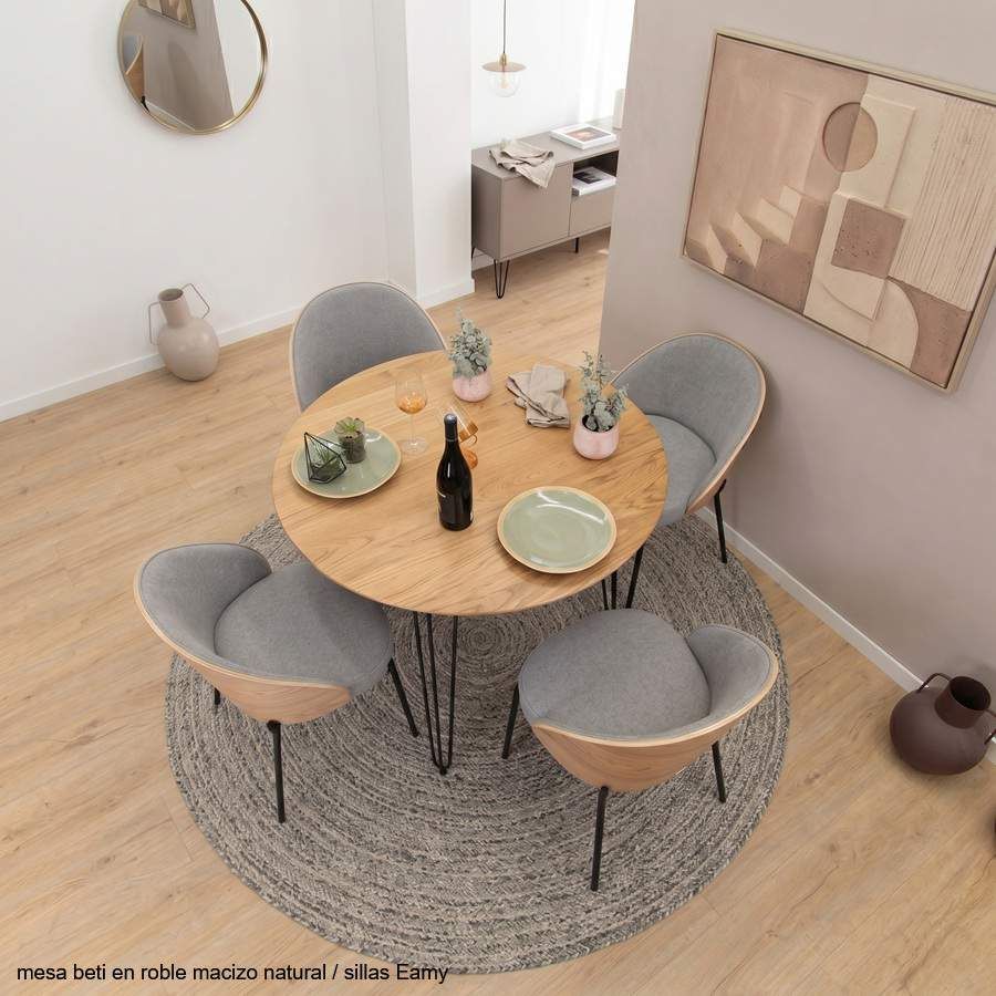 Mesa redonda Beti con encimera madera maciza roble estilo vintage