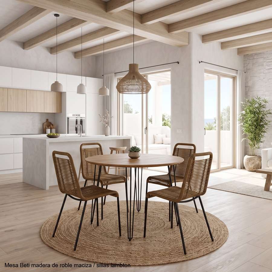 ¿ estas buscando una mesa de estas de para toda la vida ? atrévete con el modelo Beti con encimera de madera maciza y esas patas metálicas que le dan un aspecto ligero y liviano con un toque industrial.