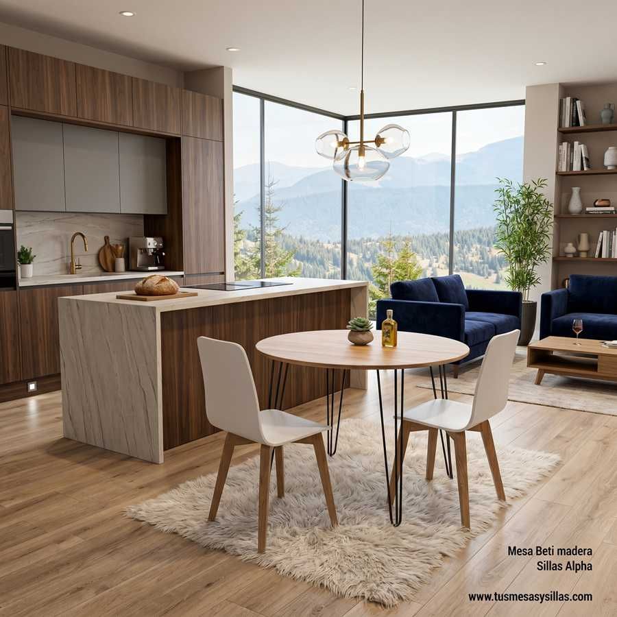 ¿La quieres con pata de madera? Échale un vistazo a la mesa Ane, es la misma calidad de encimera pero con patas de madera maciza y estilo nórdico. La puedes ver en este enlace: mesa redonda madera maciza Ane.