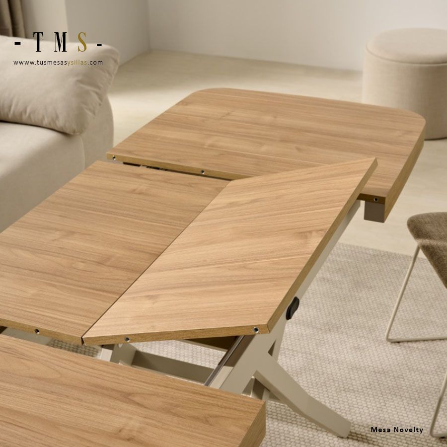 Mesa Novelty: mesa de centro elevable y extensible convertible en mesa de comedor