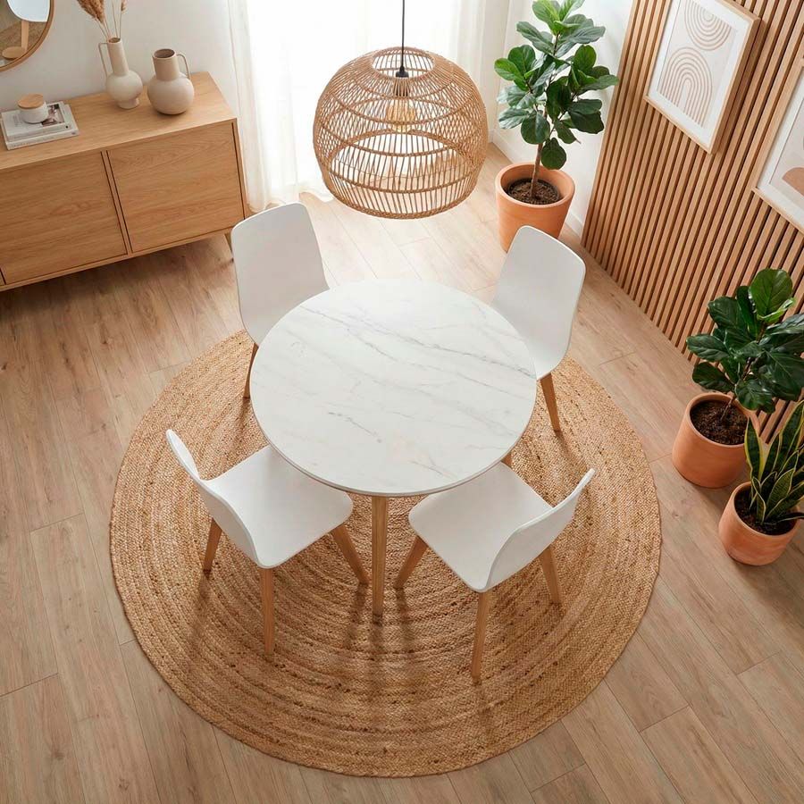 Mesa redonda con encimera de Dekton y estilo nordico en diametro de 80, 90, 100, 110, 120 cm.