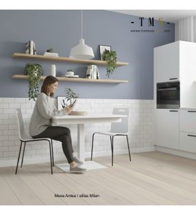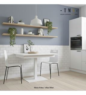 Antea es una mesa extensible de líneas rectas y minimalistas pensada y diseñada para un uso diario e intensivo en cocinas o espacios abiertos de estilo moderno y actual , se fabrica en una amplia gama de medidas y materiales y destaca por su alta estabilidad.