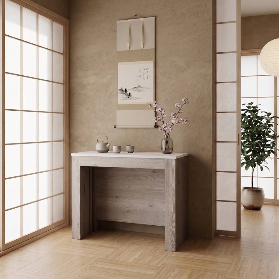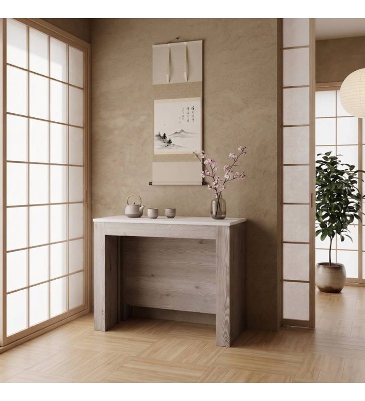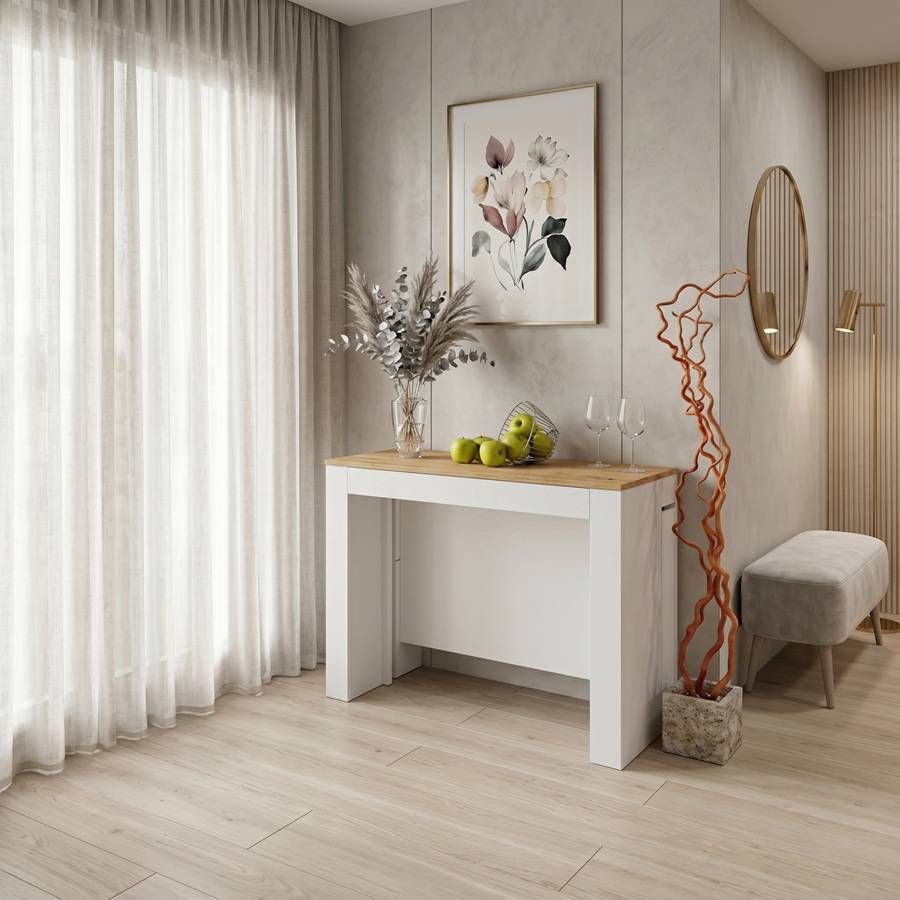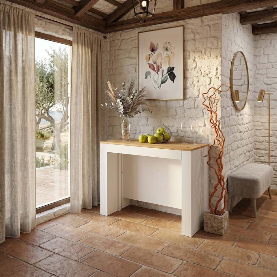 Mesa convertible en consola extensible en color blanco, madera, roble, haya en una amplia gama de medidas.