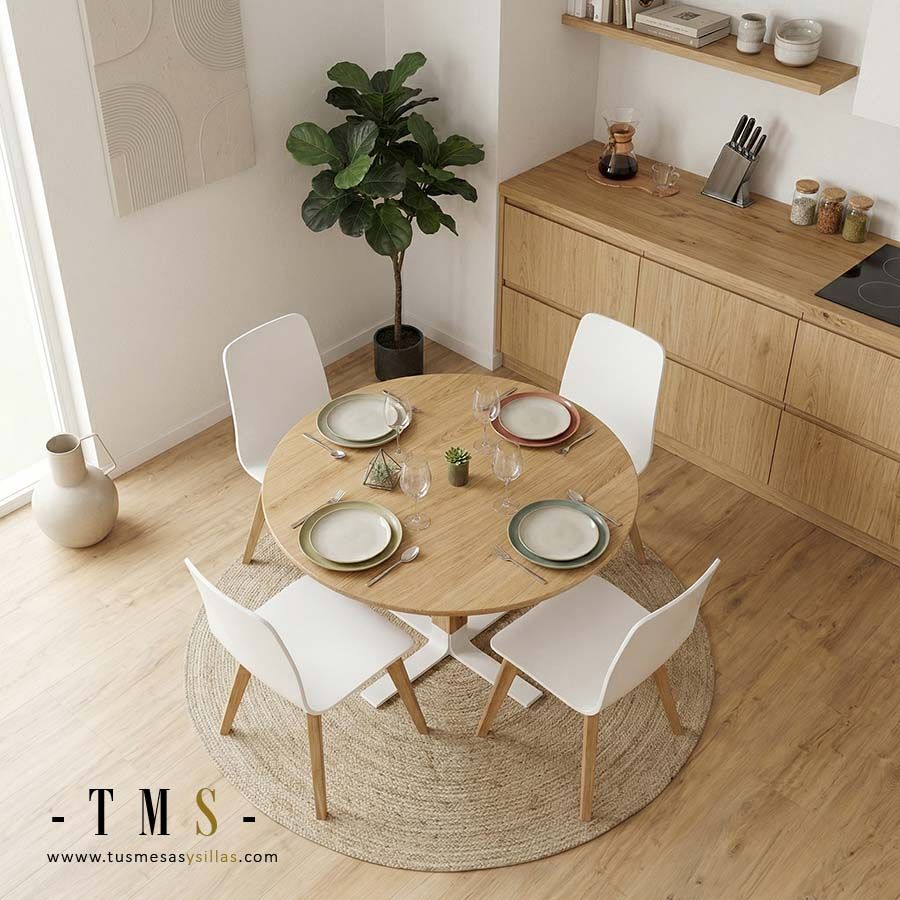 Fíjate en el modelo Eki es una mesa muy funcional con un diseño adaptado a una vivienda actual y que en diámetro de 80, 90, 100 y 110 cm en madera de roble maciza lo tenemos en stock para entrega inmediata.