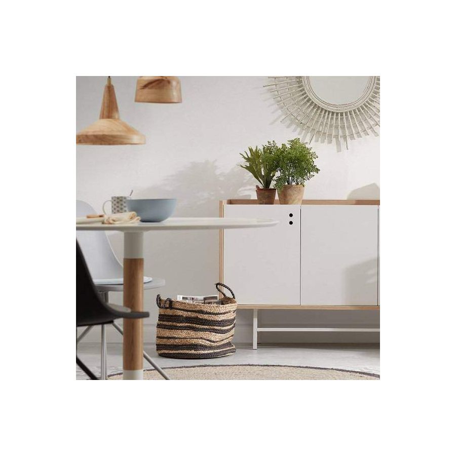 Las mesas redondas blancas son una gran elección cuando se busca potenciar la luminosidad del espacio y mantener una estética más ligera. En el caso de la mesa Trick, el sobre blanco combinado con la madera ayuda a crear interiores más cálidos. Además, pesa solo 23 kg, por lo que resulta un modelo cómodo de mover o recolocar.