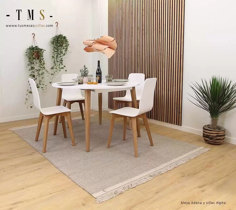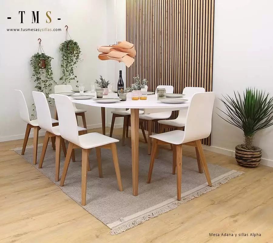 Si buscas una mesa redonda extensible blanco y madera, moderna y de diseño nórdico, que además esté en stock y se entregue en pocos días, la mesa Adana es tu mejor aliada.