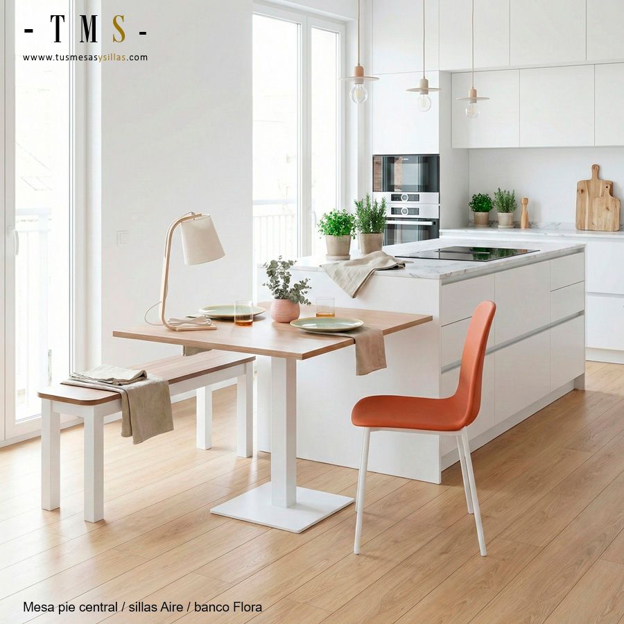 Practicidad: su ausencia de patas laterales te facilita sentarte en ella, ideal para mesas, pegadas a la pared, bancos rinconeros, para personas mayores ...