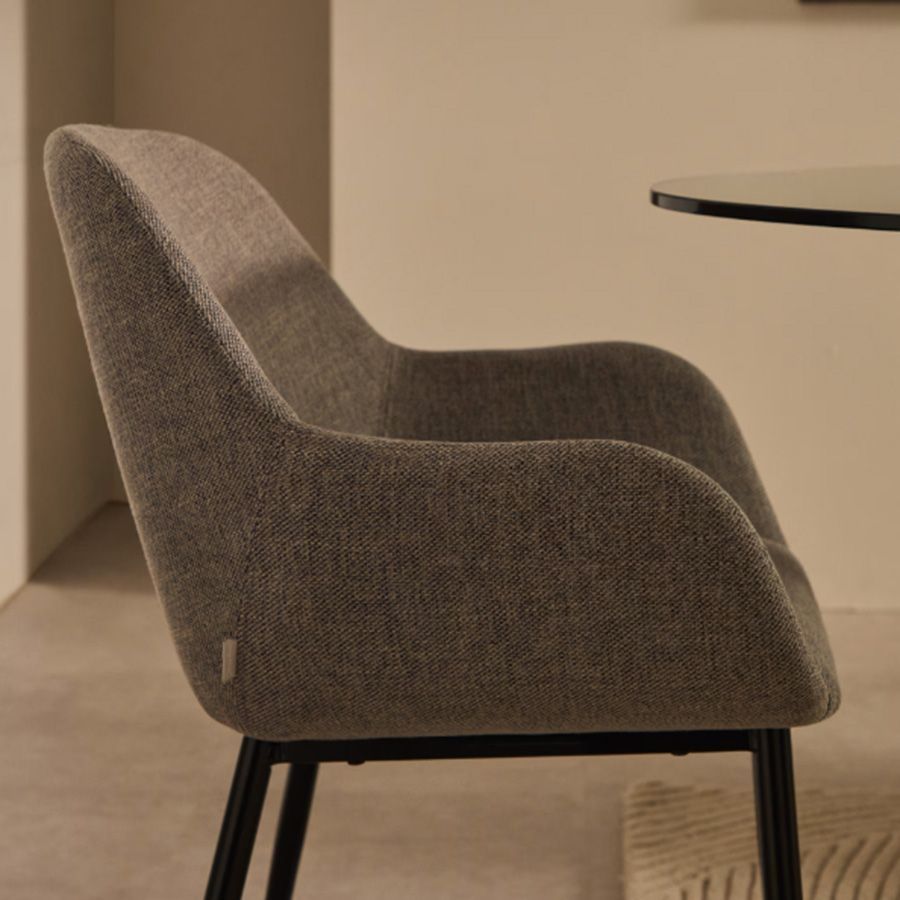 Silla Konna tapizada con brazos y patas de madera o metal