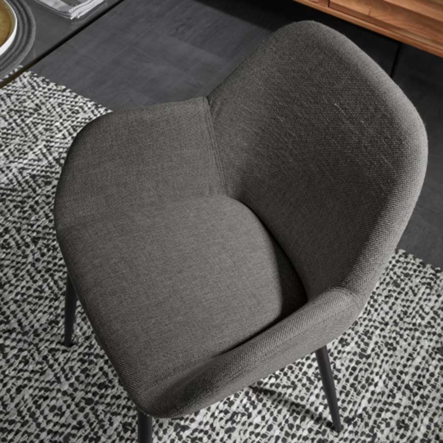 Silla de comedor con brazos en polipropileno, asiento tapizado y patas metálicas, Lore