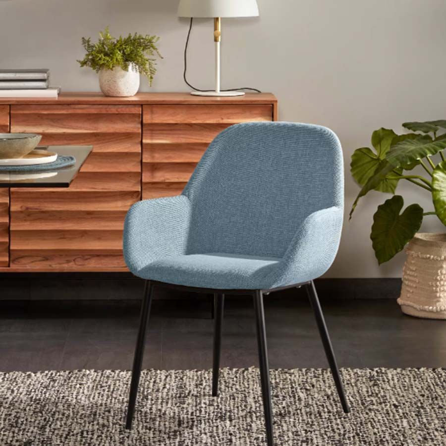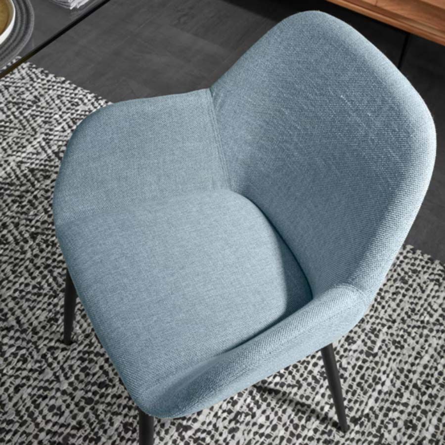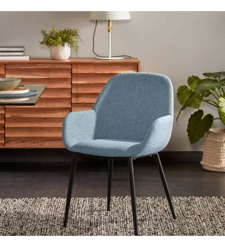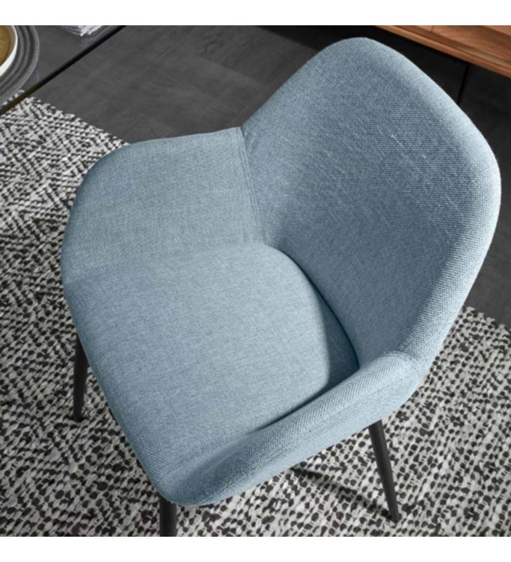 - Tapizado azul claro y patas acero negro