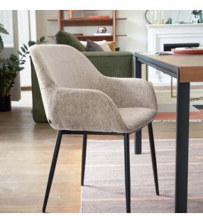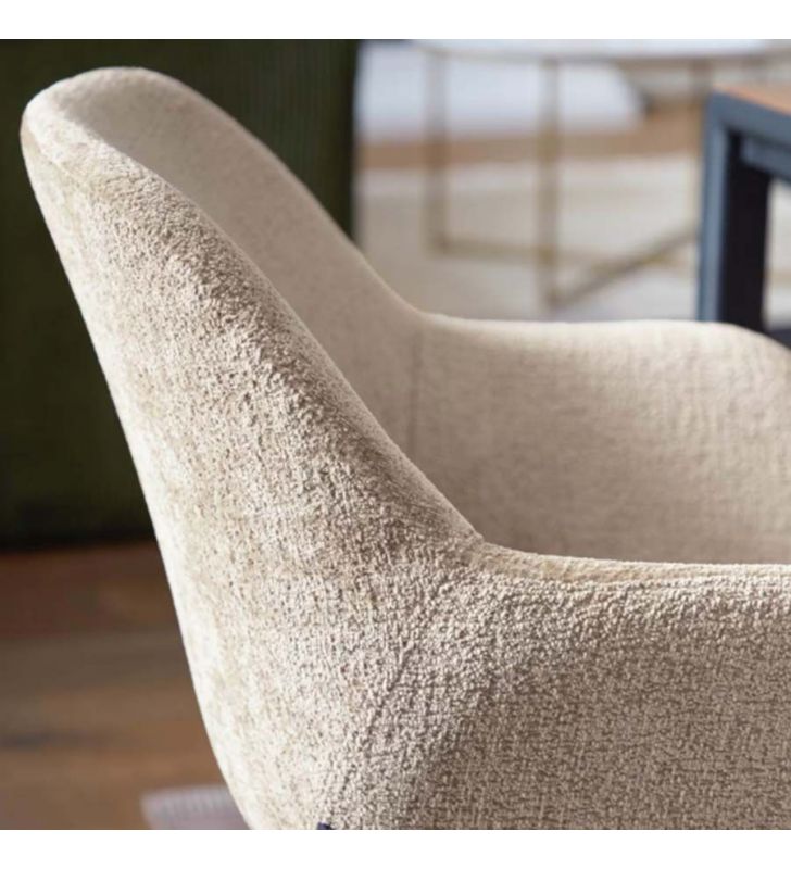 - Tapizado chenilla beige y patas en acero color negro