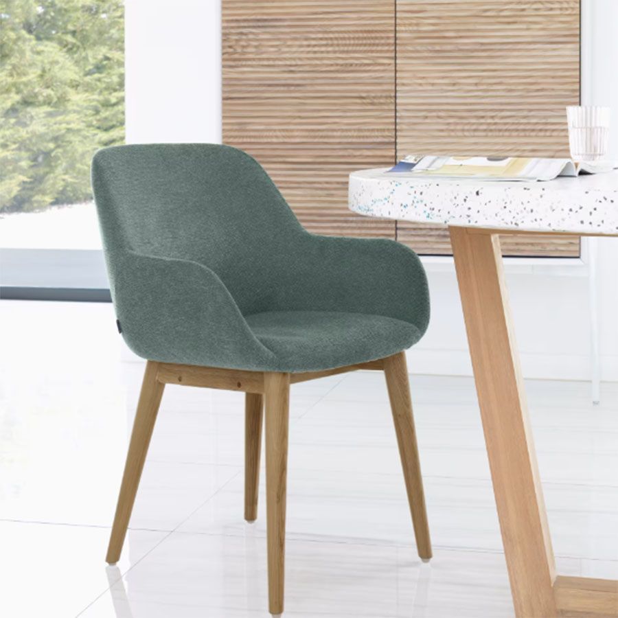 Su forma envolvente con reposabrazos integrados ofrece una sentada cómoda y estable, pensada para disfrutar de sobremesas largas o un uso diario prolongado.