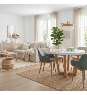 Combina fácilmente con mesas de distintos materiales y acabados.