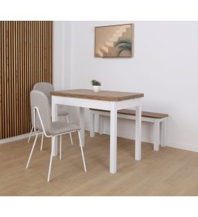 Table de cuisine extensible avec pieds ronds en métal et coins arrondis, Eva