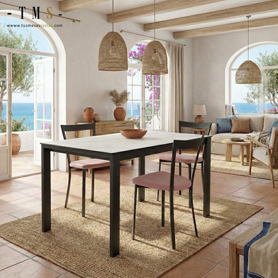 Mesa con pata metálica deslizante y extensible para cocina moderna, Aura