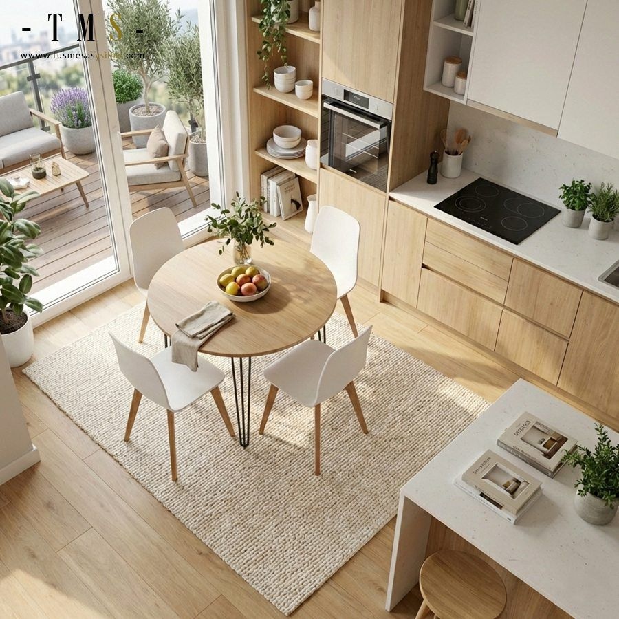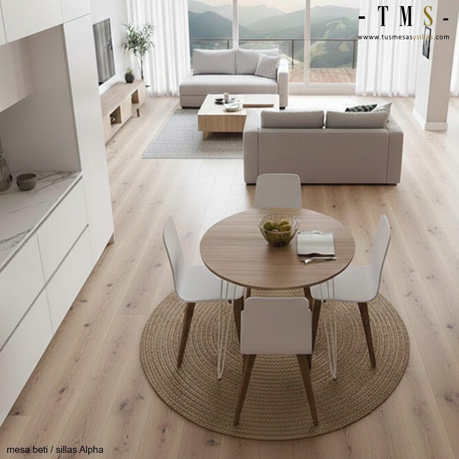 Les tables rondes sont une option intéressante lors du choix d'un modèle de table, elles apportent une symétrie à la pièce, elles sont très Ils sont confortables à utiliser et permettent des après-heures ou des rassemblements sociaux très agréables, car ils n'ont pas de tête de lit et tous les convives sont à la même distance et dans la même position. Ce modèle se distingue par sa légèreté visuelle et la grande distance libre entre le plan de travail et le sol.