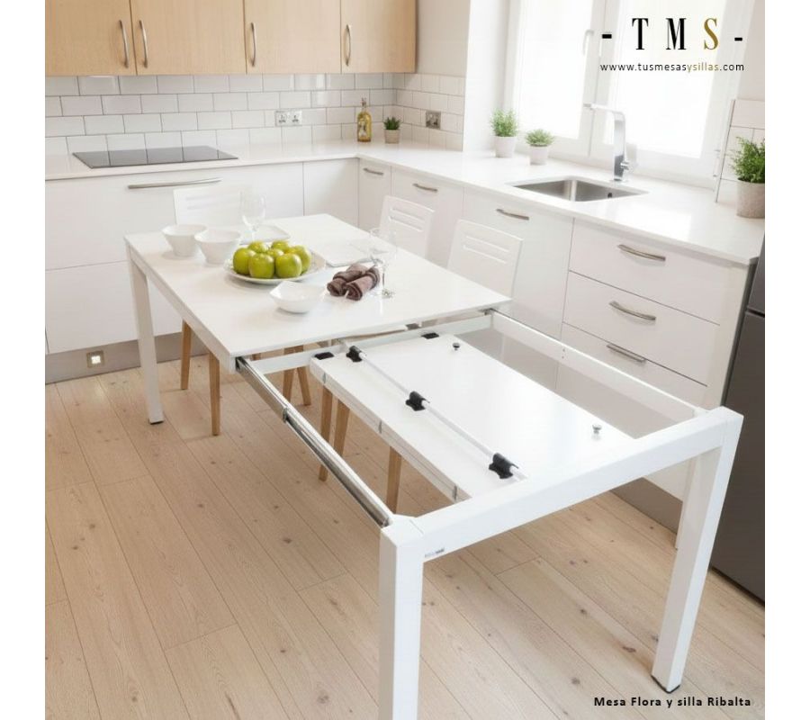 Vous pouvez voir ici les modèles de la même famille Flora :Tables extensibles avec plateaux de cuisine Silestone 110x70, 120x80...