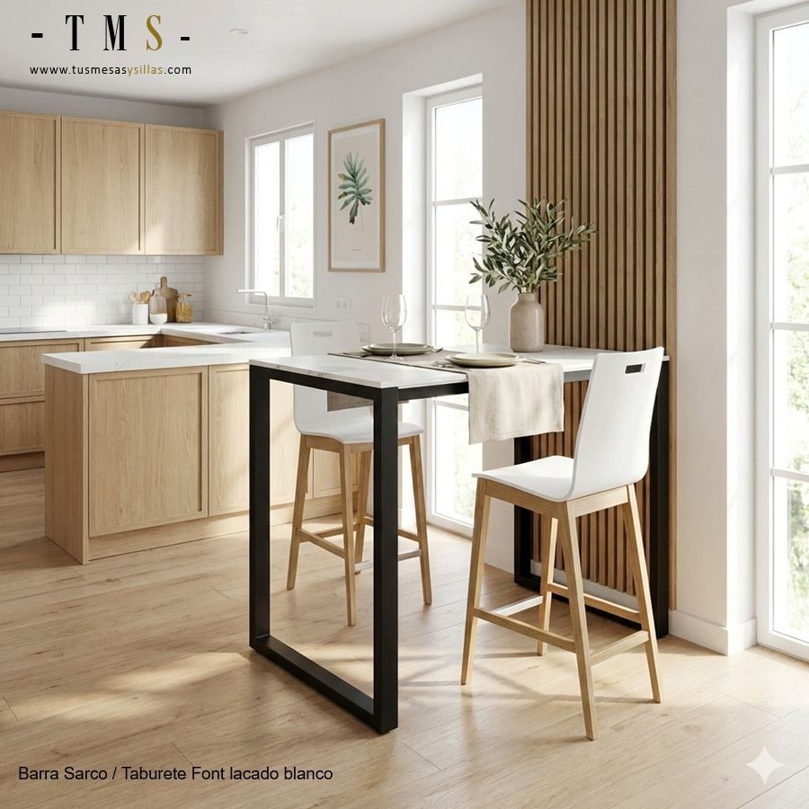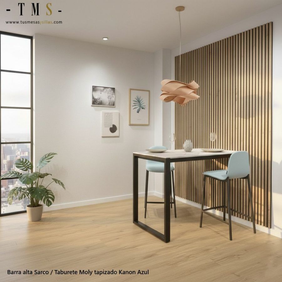 Les tables hautes sont une tendance dans la décoration, dans ce cas avec la fixation à un mur elles permettent de séparer les environnements et de créer un espace différent et pratique pour votre maison.