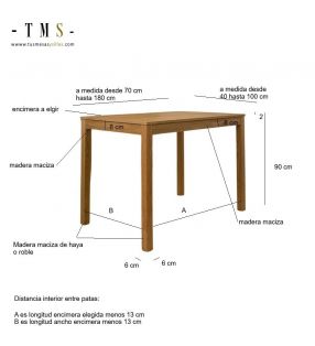 Les pieds sont en bois massif de hêtre ou de chêne dans un format carré de 6x6 cm et avec une large gamme de finitions, les jupes de la table sont également en bois massif et Same terminer comme les jambes.