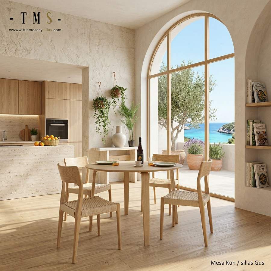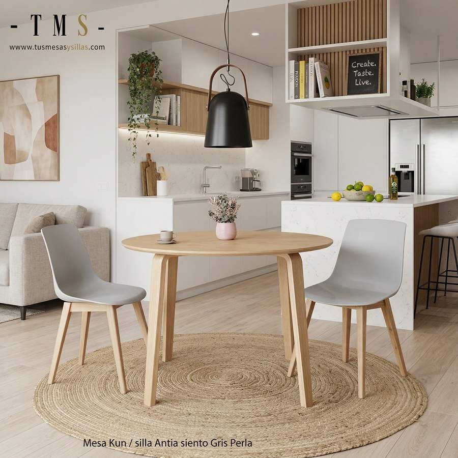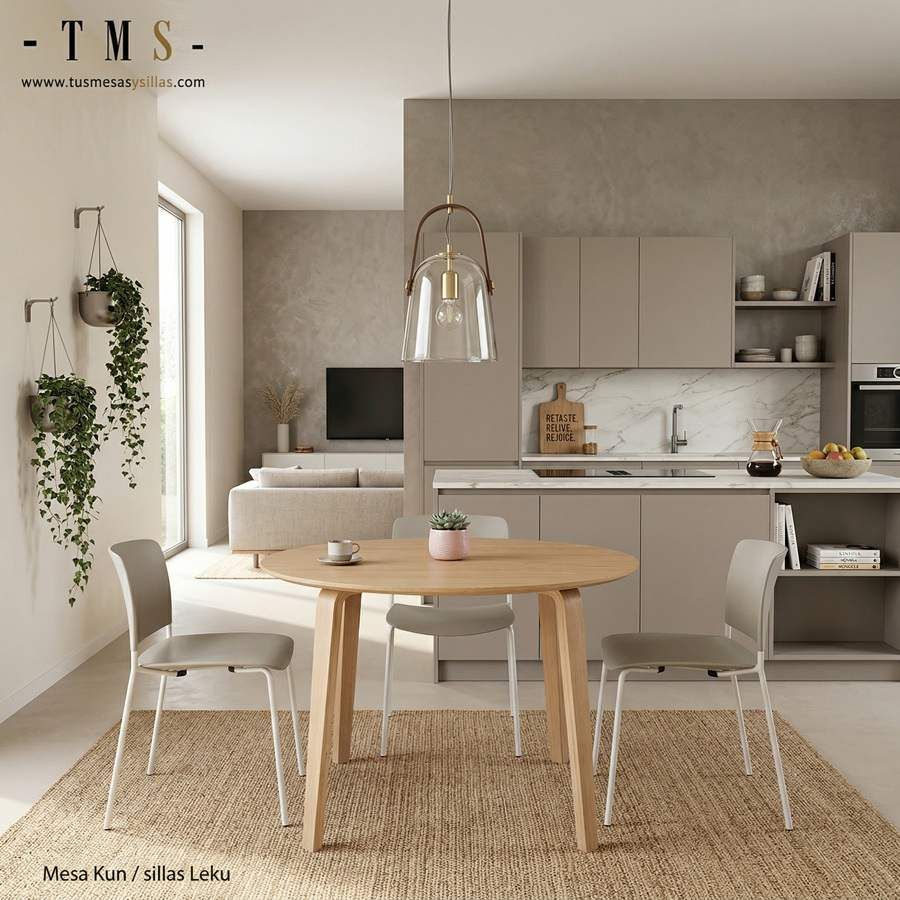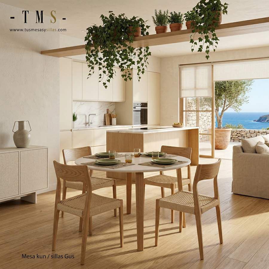 La table Kun se marie très bien avec des chaises rembourrées, des chaises en bois, des finitions blanches, noires, beige ou sable. C’est l’une de ces pièces faciles à associer et très agréables visuellement, car elles apportent de la présence sans saturer l’ambiance.