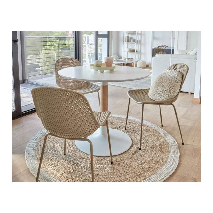 Disponible en diamètre de 110 et 120 cm, cette table ronde de style nordique s’intègre très bien dans les cuisines, les salles à manger et les espaces ouverts. De plus, nous l’avons en stock avec livraison immédiate, pour que vous puissiez en profiter sans longues attentes.