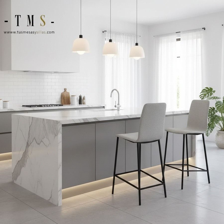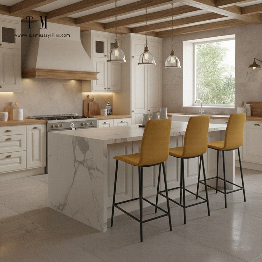 Cómodo y sobre todo lo compramos porque el respaldo bajo no entraba debajo de la encimera de nuestro mostrador